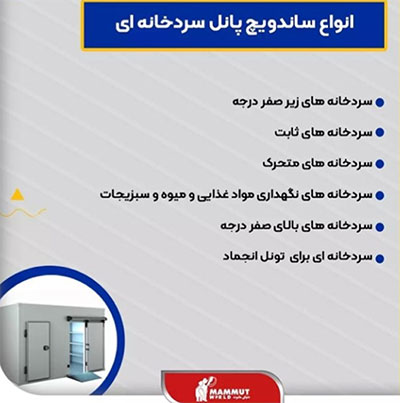 یکی از عوامل تاثیر گذار در هزینه ساخت سردخانه سازه سردخانه می باشد که با استفاده از ساندویچ پانل ها اجرا می شود و شما می توانید برای کسب اطلاعات بیشتر در این زمینه به صفحه قیمت ساندویچ پانل مراجعه نمایید. و برای ساخت و درخواست مشاوره جهت ساخت و اجرای انواع سردخانه با کارشناسان و مشاوران دنیای ماموت تماس بگیرید .